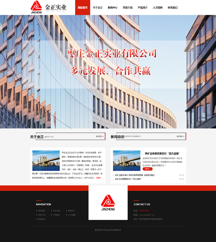 祝賀金正實業(yè)有限公司網(wǎng)站上線 公司介紹: 棗莊金正實業(yè)位于山東南部。處在京臺高速、京滬高鐵、津浦鐵路中間位置,距鐵路專用貨場5公里,距徐州觀音機場70公里,毗臨日照港、青島港、連云港三大出海口,交通便利、快捷。 金正實業(yè)是集采礦、選礦、冶煉、煤化工、投資、貿(mào)易為一體不斷發(fā)展,已成為魯南地區(qū)較有影響力的大型企業(yè)。下設(shè)金正礦業(yè)、新疆雙全五洋能源、并參股伊犁特煤化工、新疆國投寶地能源等公司,F(xiàn)有職工3000余人,資產(chǎn)20億元。先后獲得棗莊百強企業(yè)、突出貢獻企業(yè)、誠信經(jīng)營企業(yè)、納稅十強企業(yè)、山東省工會工作先進企業(yè)等榮譽稱號。 金正礦業(yè)年產(chǎn)鐵精粉60萬噸,金正實業(yè)年產(chǎn)鑄造用生鐵26萬噸,主要銷往江蘇、浙江、福建、安徽、河北、山東等地,深受廣大客戶好評。 公司始終秉承“多元發(fā)展、合作共贏”的經(jīng)營理念,遵循“精誠團結(jié)、銳意進取”的企業(yè)精神。竭誠為客戶提供優(yōu)質(zhì)的產(chǎn)品和服務(wù)。真誠歡迎各界同仁前來指導(dǎo)、合作,我們愿與您風(fēng)雨同舟、攜手共創(chuàng)美好未來。 棗莊金正實業(yè)有限公司