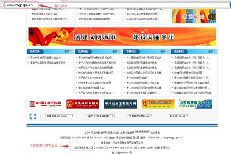 1、 登陸棗莊市政府采購(gòu)網(wǎng)地址:http://www.zzgp.gov.cn/ 拉到網(wǎng)頁(yè)下邊: